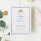 Introducing our stunning bridal shower invitation for the ultimate Italy destination celebration! This invitation features elegant blue calligraphy, perfectly paired with a small lemon branch illustration, creating a sophisticated and chic design. The backside of the invitation is inspired by classic Italian blue tiles, adding an extra touch of elegance and transporting you straight to the picturesque streets of Italy.