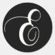 E monogram with a black background, white script initial and silver border. Perfect sticker for your wedding envelopes, gift bags, or other decor for your elegant wedding.