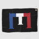 E Monogram overlaid on NLD Flag on bk gtcnt Golf Towel