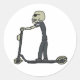 Electric Scooter design features an e-scooter being ridden with style by stick figure skeleton. The e scooter is an alternative ecological transport which happens to be cool to ride, even for the undead.