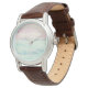 I like the illustrative watch with the lady on it. It is a great reminder that I am blessed and it has a very sturdy leather band. The colors are true and vibrant. Love the color of the Leather also. Very nice.