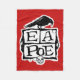 Snuggle up with your favourite story and enjoy the spirit of Edgar Allan Poe’s work with this vector illustration by illustrator Lauren Ball of a raven overlooking dark, weathered, gnarled boxes containing the hand-drawn letters “EA POE.”
