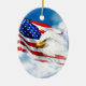 The image of an eagle's proud head is superimposed upon the American Flag waving in the sky. This patriotic design is an inspiring image for all those who love the USA and its symbols of freedom.