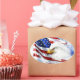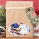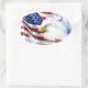 The image of an eagle's proud head is superimposed upon the American Flag waving in the sky. This patriotic design is an inspiring image for all those who love the USA and its symbols of freedom.