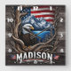 Eagle Nestled Amidst Mountains and American Flag Square Wall Clock