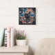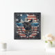 Eagle on Branch With American Flag Square Wall Clock