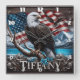 'Eagle on Branch With Flag Background' Square Wall Clock