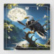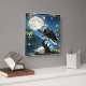 Eagle Perched Calmly on Branch Under Full Moon Square Wall Clock