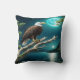 An eagle stands gracefully on a tree branch overlooking a serene river, illuminated by the soft light of the moon and surrounded by lush landscapes.