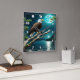 Eagle Perched on a Branch by Moonlit River Square Wall Clock