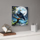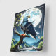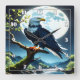 Eagle Perched on a Branch Under Full Moon Square Wall Clock
