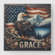 Eagle Perched on Branch Against Mountain Landscape Square Wall Clock