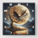 Eagle Perched on Branch Beneath Full Moon Square Wall Clock