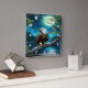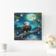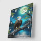 Eagle Perched on Branch Under Full Moon Square Wall Clock