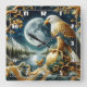 Eagle Perched on Branch Under Full Moon Square Wall Clock