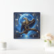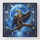 Eagle Perched on Branch Under Full Moon Square Wall Clock