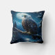 Eagle Perched on Branch Under Full Moonlight Cushion