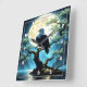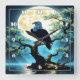 Eagle Perched on Branch Under Full Moonlight Square Wall Clock