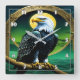 Eagle Perched on Branch Under Moonlit Sky Square Wall Clock
