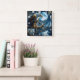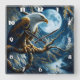 Eagle Perched on Branch Under Moonlit Sky Square Wall Clock