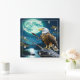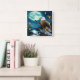 Eagle Perched On Rock Beneath Full Moon Square Wall Clock