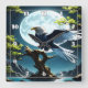 Eagle Perched on Tree Branch Under Moonlight Square Wall Clock