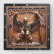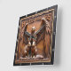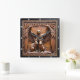 This highly dimensional square wall clock features a unique illustration of a brown eagle with a focused gaze and a white, smiling rabbit sitting closely together. The entire design is rendered in muted brown, tan, and dark leather-like tones, strongly suggesting a deep sculpted relief or Sculpted Leather Look. The eagle is perched on the left, displaying detailed feathers, while the rabbit is on the right, appearing cheerful with long ears and textured fur. They are framed by a simple border of textured vines and thick leaves carved into the perimeter. The background features detailed rocky terrain and stylized trees. The large, three-dimensional embossed text "BESTIES FOR LIFE" is carved across the top center in a bold, golden serif font. The clock face features a simple clock face border with large, white, numbered tick marks (1 to 12) integrated into the outer frame. The artwork is surrounded by a thick, dark brown decorative border that resembles a black wood frame.