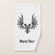 Two headed eagle, power symbol of byzantine emperors. Custom background colour. Custom text on each towel.