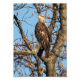 A sub-adult bald eagle with interesting markings is perched on a branch on a sunny morning.