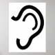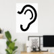 Simple solid black graphic of a human ear. Customise and choose your own background colour. Image available on various gifts and products.