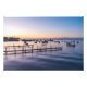 early morning scenic of lake with piers and boats viewed from malecon in chapala jalisco mexico