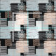 Earth colours abstract geometric pattern. Light-blue and black accents. Messy lines and squares interlocking shapes.