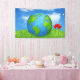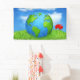 Beautiful Planet Earth Illustration on grass, red flower clouds and blue sky
