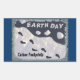 An allegorical representation of the dangers of climate change. Features a line of footprints, "carbon footprints," which have melted through the polar ice pack. "Earth Day" is represented as breakaway ice; "Carbon Footprints" as ash or soot; perhaps drops of oil. Please tread lightly on the Earth.