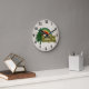 The clock did not take as long to arrive as I thought it might and was extremely well packaged. I didn't do the measurements so I didn't realize it is a little smaller than the average clock but that does not matter (just make sure you check if that's important to you).It is really nifty! It seems very solid and well made not flimsy at all. It has been going well and has kept good time in its few weeks on my wall. Nice product. Gets noticed too! Nicer in real life than the picture but true to the picture