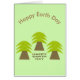 This card features a graphic image of three trees that resemble palm trees with large green leafy fronds and a sturdy brown tree trunk. There is a message in brown text to look like soil under the trees. The message says Happy Earth Day.