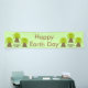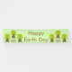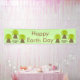 This awesome banner features a graphic image of three trees that resemble palm trees with large green leafy fronds and a sturdy brown tree trunk. There is a message in brown text to look like soil under the trees. The message says Happy Earth Day.