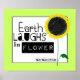 In a variety of fonts the design reads, "Earth Laughs in Flower", a quote by Ralph Waldo Emerson. It's accompanied by a picture of a sunflower.