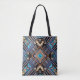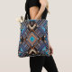 This is a design that radiates with layered diamonds and lines in teal, beige and black. It is both ancient geometry and modern vibe at once.