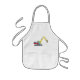 This apron is made with a durable fabric! My grandson LOVES it! The shape provides great coverage to protect clothes from paint spatters, etc. The print quality is excellent! The detailed lines of the dragon drawings are printed in a crisp, clean manner.