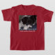 The t-shirt feels and looks great quality, a good thick cotton. It will be a little big for my son, but that means he will be able to wear it and not out grow it too soon. The print was as described on the order when personalised. True size, shape and colour T-shirt- thanks.