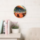 Wall Clock, 25.4 cm Round Black Wooden Frame