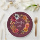 Earth Tone Burgundy Fall Flowers 80th Birthday Paper Plate