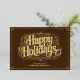 Send warm holiday vibes with this gorgeous chestnut earth tone real foil holiday card featuring swirly typography and muted tones, perfect for stylish small businesses spreading cheer. Your logo appears on the back!