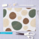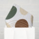 Shades of brown, green, and beige organic shapes seamless pattern with a white background.