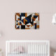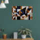 Geometric abstract art with interlocking shapes in navy blue, terracotta, black, and cream. Rich painting texture with subtle vertical details. Modern design ideal for contemporary decor. Brings balance and sophistication to the space with its cubist style and elegant color palette.