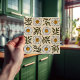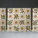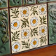 Earthenware tile, solid buff body, impressed with a faux relief motif in the Art Nouveau style of daisies grey-green, green leaves and stems. This beautiful ceramic tile features a seamless floral pattern from the Victorian/Edwardian era. The Art Nouveau movement was known for its intricate designs and organic shapes that were inspired by nature. The daisy flower symbolises purity and innocence, making it a perfect gift for someone special. This tile is perfect for adding a touch of elegance to any room in your home.