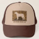 Three wooden, earthy tones make up this funky Australian Cattle Dog hat. The dog breed's silhouette is in the centre, with radical angles in the background. Below is the breed name. Fun Australian Cattle Dog gifts for dog lovers.