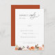Earthy Watercolor Autumn Botanical Floral, wedding RSVP cards. Black typography on coordinating terracotta orange colour backing.