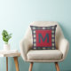Earthy Blue Khaki Red Monogram Plaid Pillow
